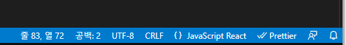 우측 하단에 Prettier가 아닌 ESLint가 떠있어야 하는데, 다르게 떠있는 상황